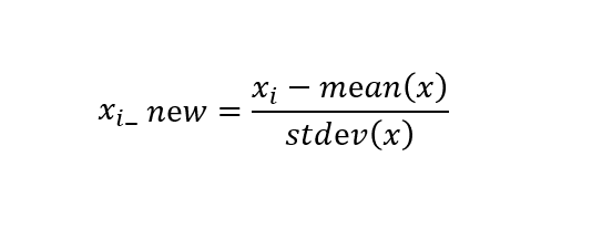 train_scaled = scaler.fit_transform(train) test_scaled = scaler.transform(test)표준화(Standarization): 변수를 평균 0, 분산이 1인 가우시안 정규분포로 변환해준다.